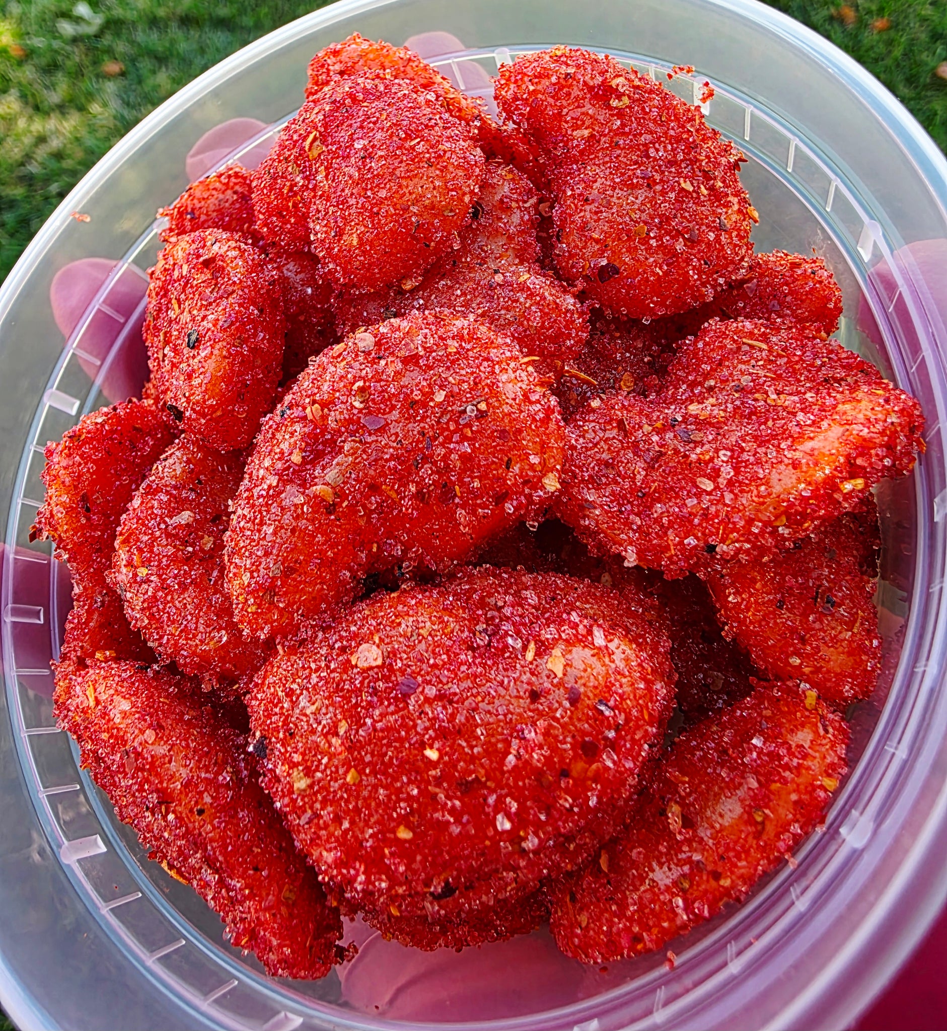 Experience the perfect combination of sweet and spicy with our Mangos Enchilados gummies, coated in our signature chamoy and chili powder.